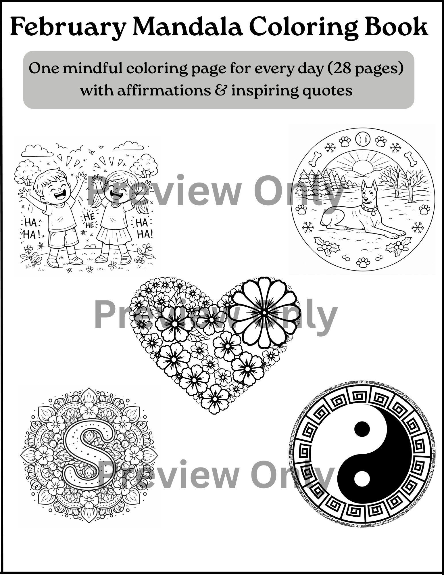 A gentle daily mindfulness practice for February, featuring one calming mandala page for each day of the month. Designed to support relaxation, focus, and intentional new beginnings through quiet, creative moments. Perfect for stress relief, self-care, and mindful winter reflection.